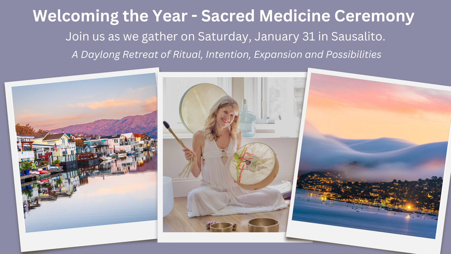 Gina will be graciously hosting us at her Floating Home in the heart of Sausalito. Gina holds space for deep renewal, clarity and connection. She also finds profound meaning in creating physical spaces where others can do the same. She will be graciously hosting us at her majestic Floating Home in Sausalito. As a Space Creator, and Intuitive Guide, she designs environments that invite transformation — through Sound Journeys, Private Healing Sessions and offering her space as sanctuaries for others.