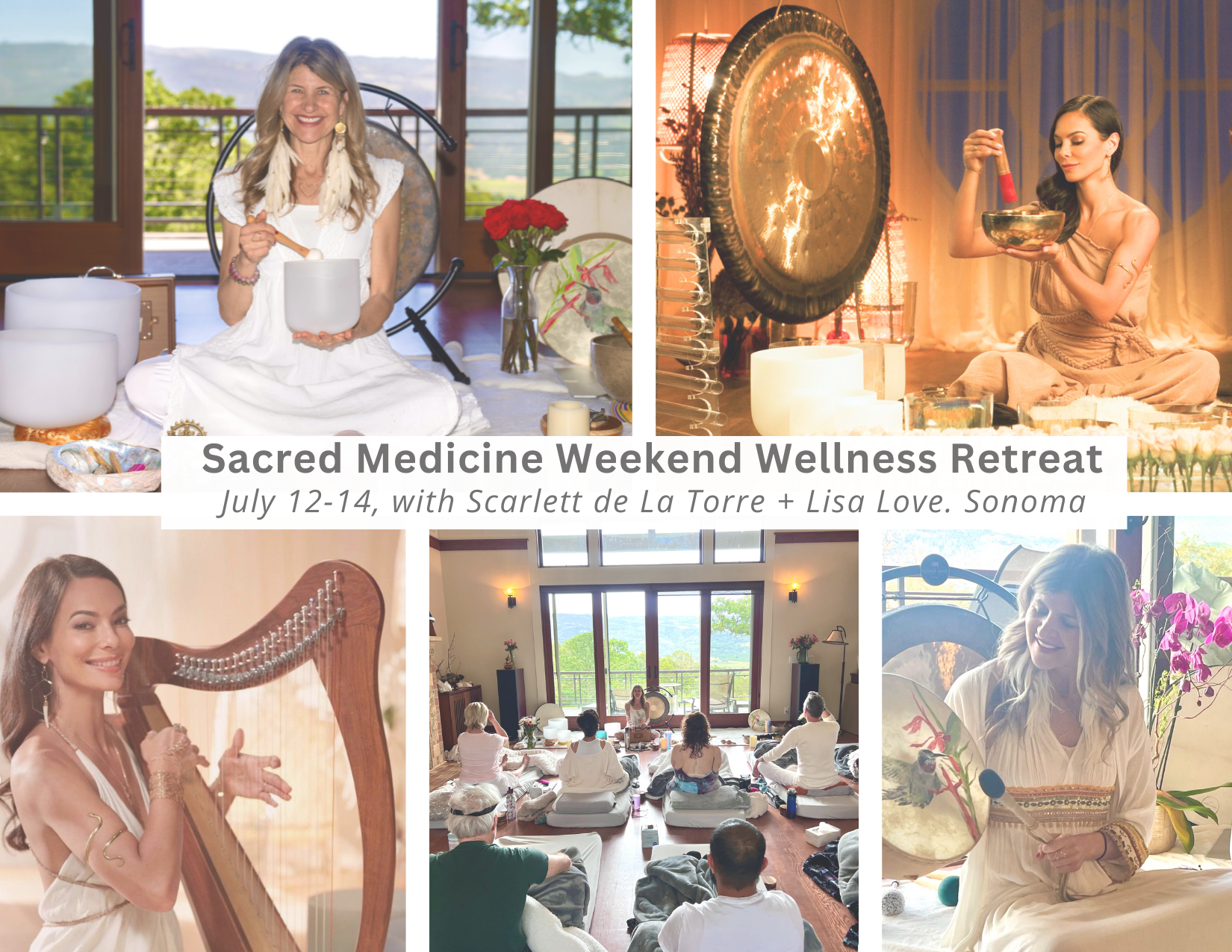 Step into a realm of profound healing and transformation with our Sacred Medicine Retreat Weekend, and this rare opportunity to experience the combined power of sacred medicine and sound healing, facilitated by two luminaries in the field. Whether you’re seeking personal growth, emotional release, or spiritual awakening, this weekend offers a pathway to transformation. Special guest Master Sound Meditation Practitioner Scarlett de la Torre will share her gifts of song and exquisite music with us to uplift your spirit, harmonize your body, and awaken inner peace.